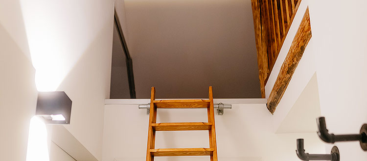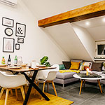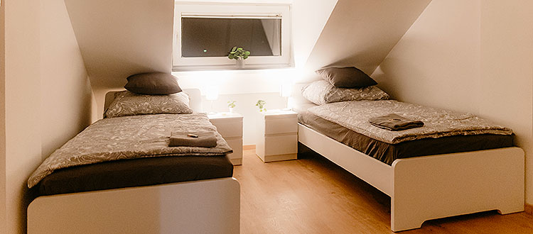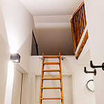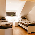 A room situated above the main floor builds the flat's heart, which is only with a ladder achievable—the flat consists of two double rooms and one single room. Five persons can be accommodated.