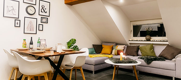 The flat is located in the Metzerstraße in Saarlouis near the motorway exit called Saarlouis Mitte. The rental is an attic flat and is situated in a building owned by Pavan rent, with two flats in total.