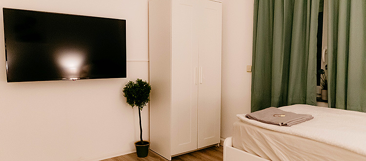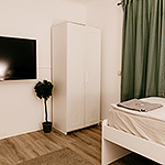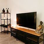 A SmartTv is available In each of the two double rooms as well in the single room. The kitchen is fully equipped. The washing machine and dryer are situated in the corridor and shared with the other Pavan rent flat.